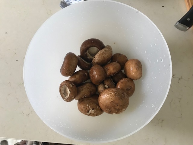 - Throw the mushrooms into a bowl, fill it with water, and toss them around a bit, drain it and repeat.