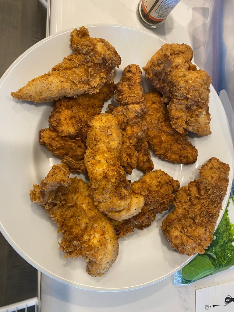So my lady and I were deciding on what to make for the coming week – which we have to do three days ahead of time if we want to get groceries delivered instead of navigating the hellscape that is a grocery store now – and came up with the idea of fried chicken. Because, really, healthy eating, now…psssh…whatever…